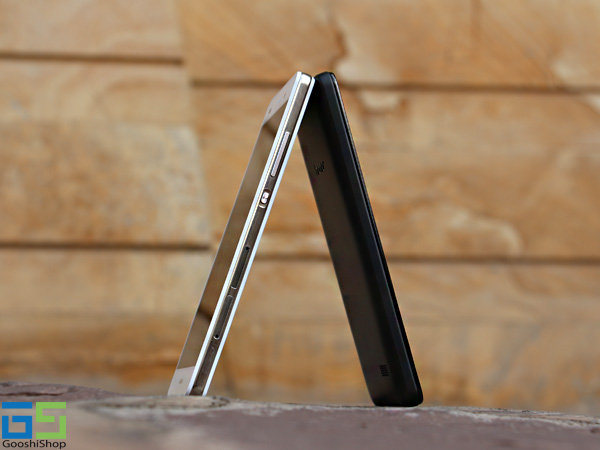 در ادامه به لبهی سمت راست این گوشی میرسیم بسیار شلوغ طراحی شده است! از بالا ابتدا کلید یکپارچه کنترل حجم صدا و در قسمت وسط کلید پاور/ قفل قرار دارد. در بخش پایین نیز درگاه های مربوط به نانو سیم کارت و کارت حافظه جانبی microSD دیده میشوند.