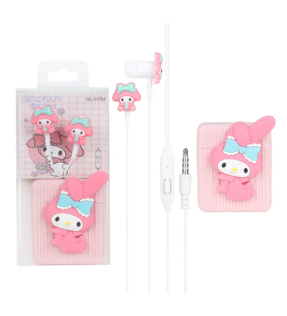 این هندزفری با الهام از شخصیت محبوب Kuromi طراحی شده و دارای رنگبندی ملایم و جذاب بنفش و صورتی است. روی هر گوشی هندزفری، قطعهای کوچک با طرح شخصیت کورومی قرار دارد که ظاهر آن را منحصربهفرد میکند. همراه این محصول یک کیف پارچهای زیپی با طرح همان شخصیت هم ارائه میشود که برای نگهداری و حمل آسان هندزفری بسیار کاربردی است و مانع گره خوردن یا آسیب دیدن کابل میشود.