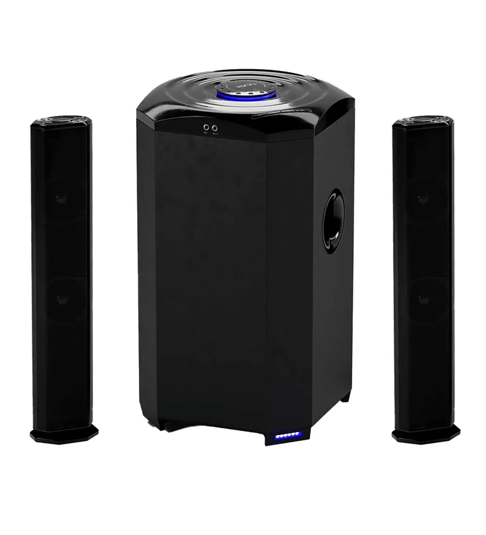 سیستم سه تکه اسپیکررومیزی تسکو TS 2181، شامل یک ساب ووفر بزرگ با ابعاد 500 در270 در270 میلیمتر و دو اسپیکر ماهوارهای است؛ این ترکیب امکان پخش صدا با جزئیات بیشتر و باس عمیقتر را فراهم میکند. ساب ووفر بزرگ به خوبی فرکانسهای پایین را پوشش میدهد، در حالی که اسپیکرهای ماهوارهای صداهای میانی و بالا را با وضوح بیشتری ارائه میدهند.