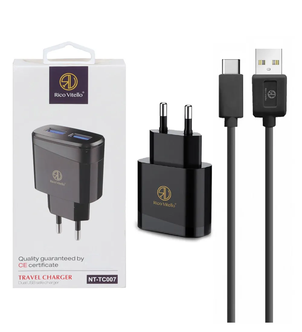 شارژر دیواری ریکو ویتلو 12 وات مدل NT-TC007 با کابل شارژ تایپ سی (دو پورت)