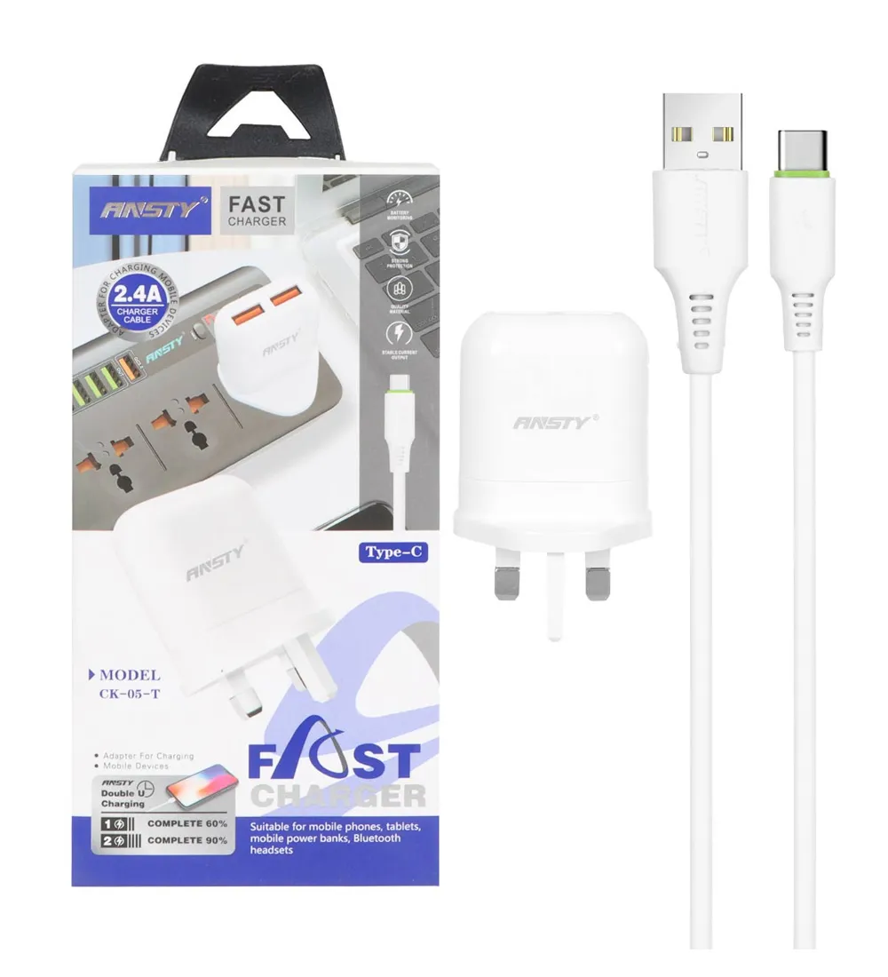 شارژر دیواری انتسی 12 وات مدل CK-05-T با کابل تایپ سی (دو پورت)