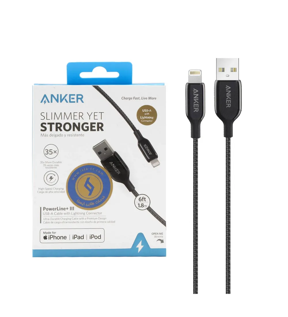 فروشگاه اینترنتی گوشی شاپ/لوازم جانبی موبایل /کابل شارژ /کابل شارژ آیفون انکر مدل PowerLine+III A8823 طول 1.8 متر