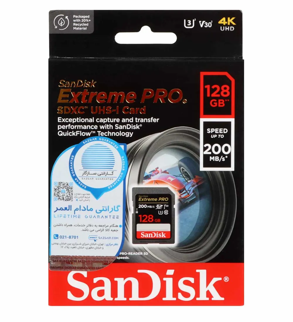 کارت حافظه سن دیسک Extreme Pro SDXC مدل UHS-I U3 200MB/S ظرفیت 128 گیگابایت