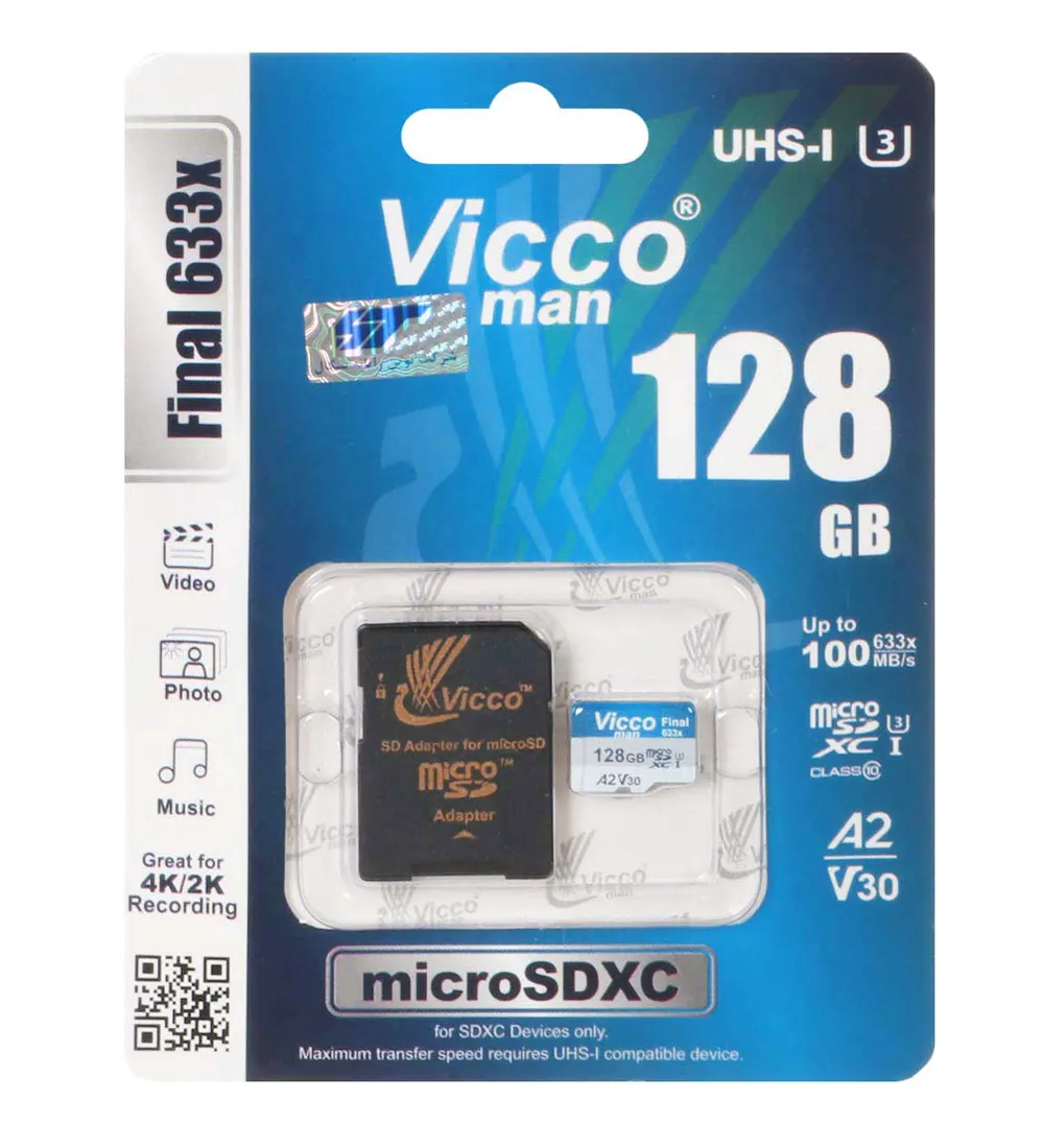 Vicco man Final 633X 100MB/s Class10 UHS-I U3 microSDXC & adapter - 128GB