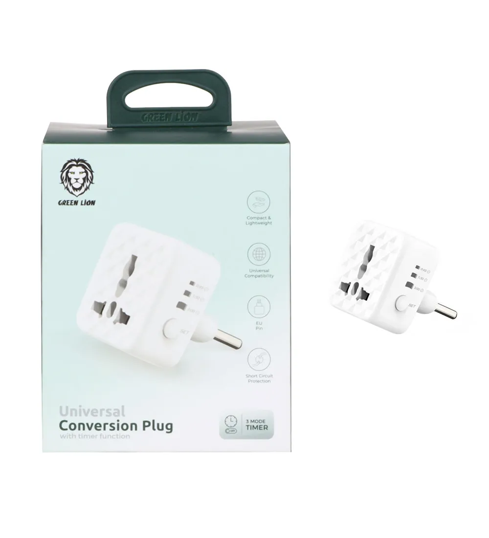 فروشگاه اینترنتی گوشی شاپ/لوازم جانبی صوتی و تصویری /چندراهی و مبدل برق /تبدیل برق 3 به 2 تایمردار گرین لاین مدل CNUCONEUPLWH
