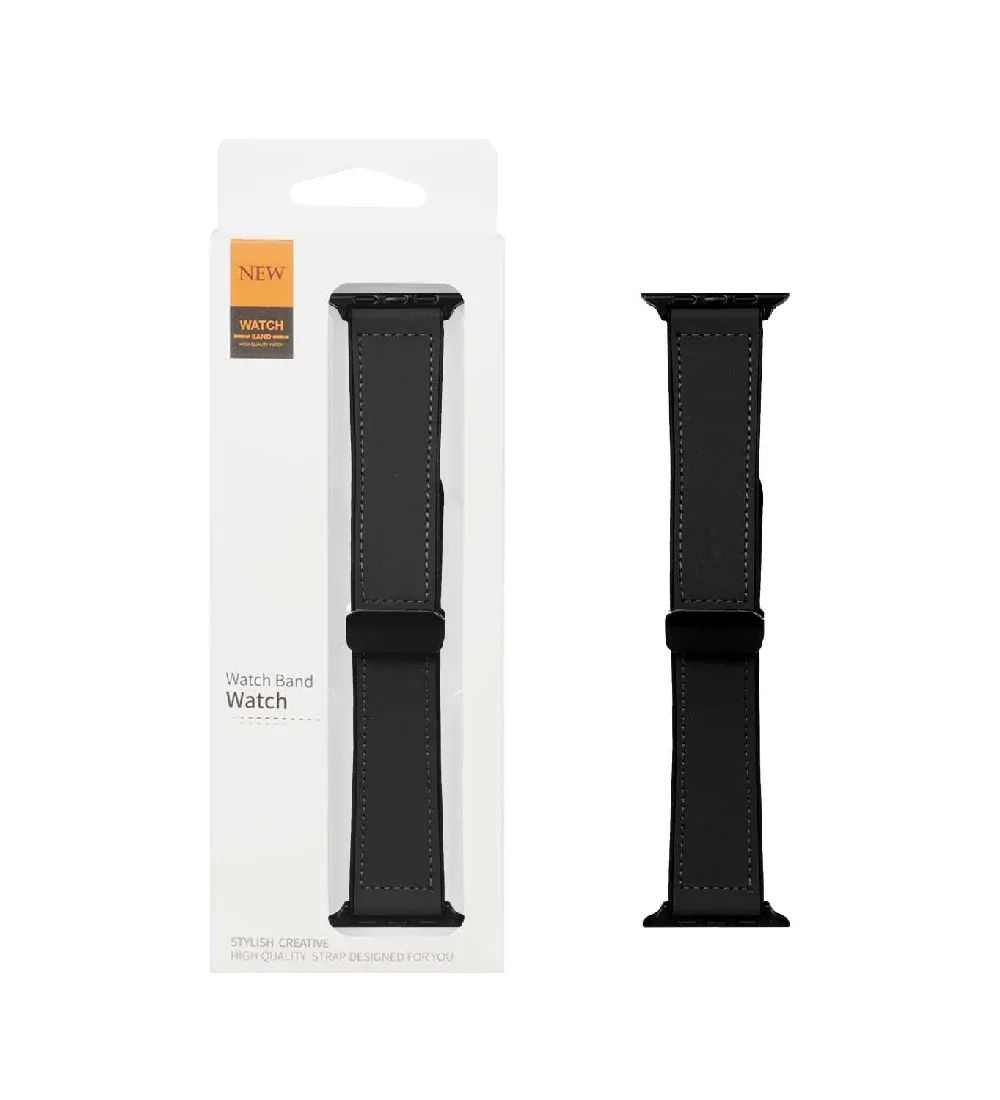 بند اپل واچ 38/40/41 میلی متری چرمی دور دوخت پشت سیلیکون مگنتی - مشکی