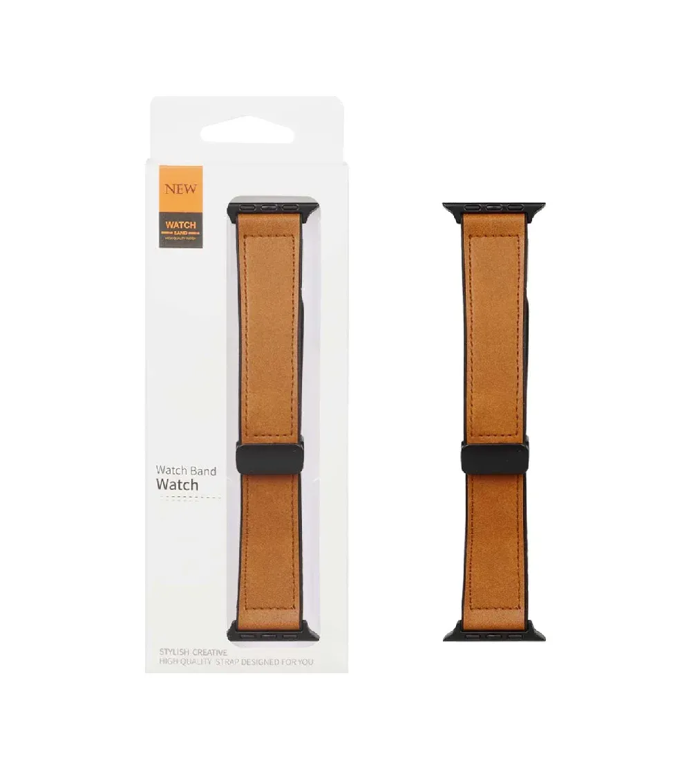 فروشگاه اینترنتی گوشی شاپ/لوازم جانبی ساعت هوشمند /بند اپل واچ متفرقه/بند اپل واچ 38/40/41 میلی متری چرمی دور دوخت پشت سیلیکون مگنتی - قهوه ای
