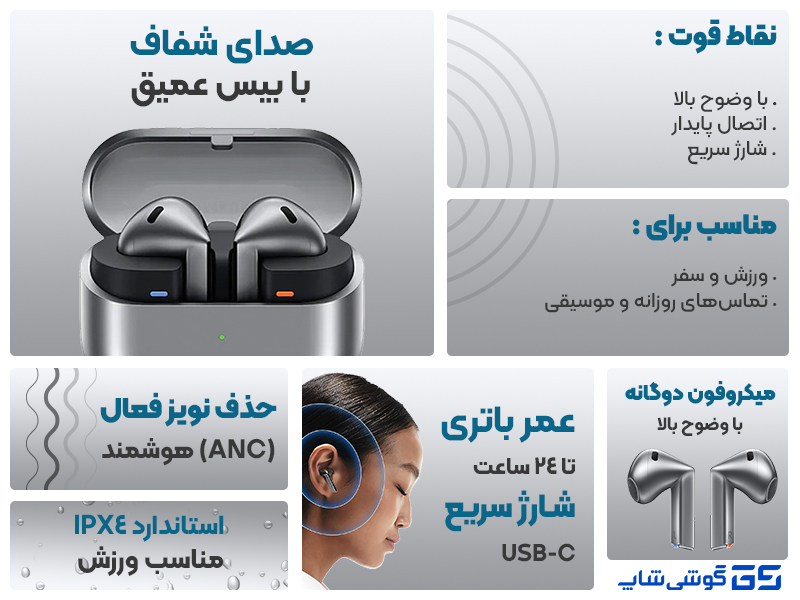 سامسونگ با Galaxy Buds 3 بار دیگر ثابت کرد که میتواند در بازار هندزفریهای بلوتوثی حرفی برای گفتن داشته باشد. این هندزفری با کنترلهای لمسی دقیقتر و قابلیت حذف نویز فعال (ANC) بالاتر از حد متوسط، نشان میدهد که هیچ گرانی در لیست قیمت هندزفری بی علت نیست. در ادامه با ما همراه باشید تا به بررسی مشخصات هندزفری بلوتوثی سامسونگ مدل Galaxy Buds 3 بپردازیم.