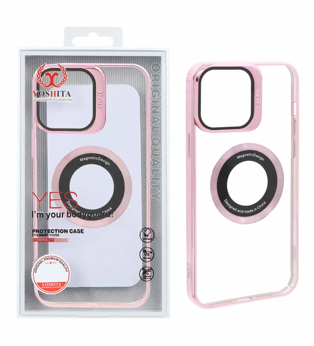 قاب گوشی اپل iPhone 13 Pro Max مدل یوشیتا مگ سیف لنز مگنتی شفاف - صورتی