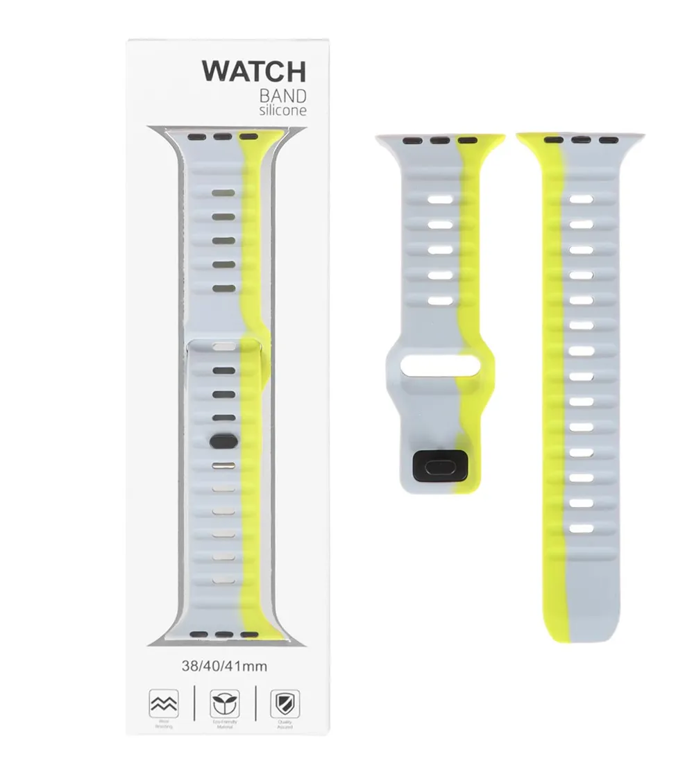 Two-Color Magnetic Silicone Apple Watch Strap 42/44/45 mm - Yellow Gray