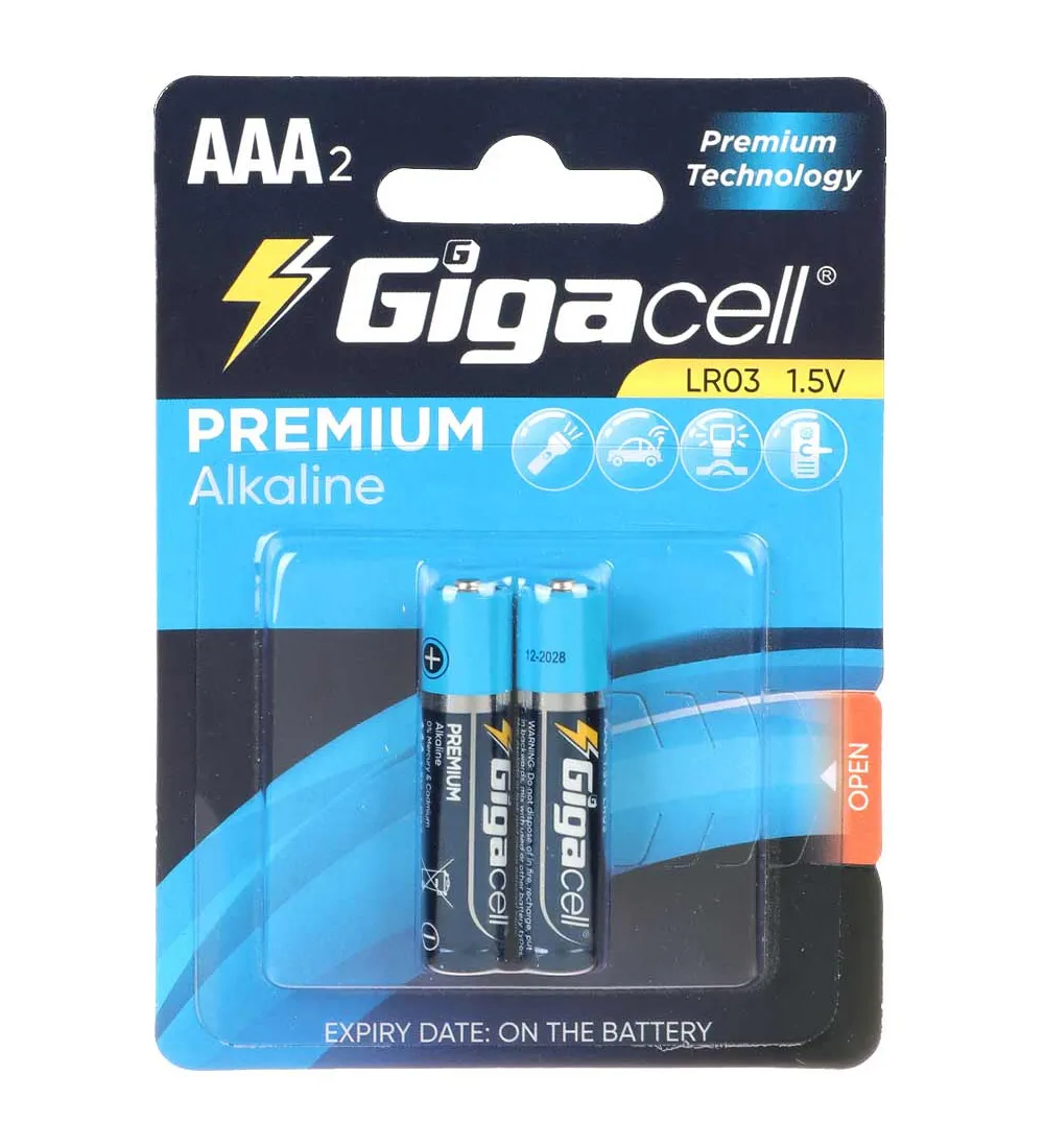 تصویر  باتری نیم قلمی گیگاسل مدل Premium Alkaline LR03 بسته 2 عددی