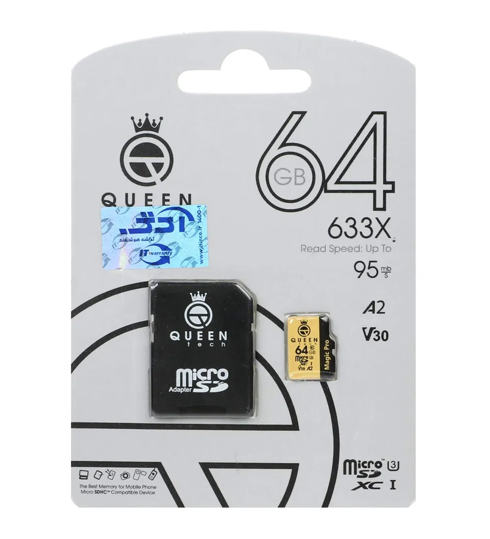 فروشگاه اینترنتی گوشی شاپ/لوازم جانبی موبایل /کارت حافظه /کارت حافظه microSDXC کوئین تک مدل 633X کلاس 10 استاندارد U3 سرعت 95MB/s به همراه آداپتور ظرفیت 64 گیگابایت