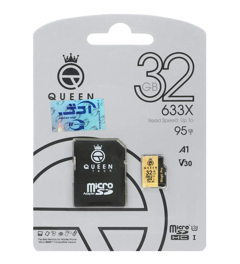 کارت حافظه microSDXC کوئین تک مدل 633X کلاس 10 استاندارد U3 سرعت 95MB/s به همراه آداپتور ظرفیت 32 گیگابایت