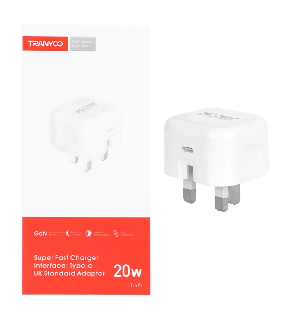 Tranyoo T-AP3 20W Three Pin Fast and PD Single Ports Wall Charger