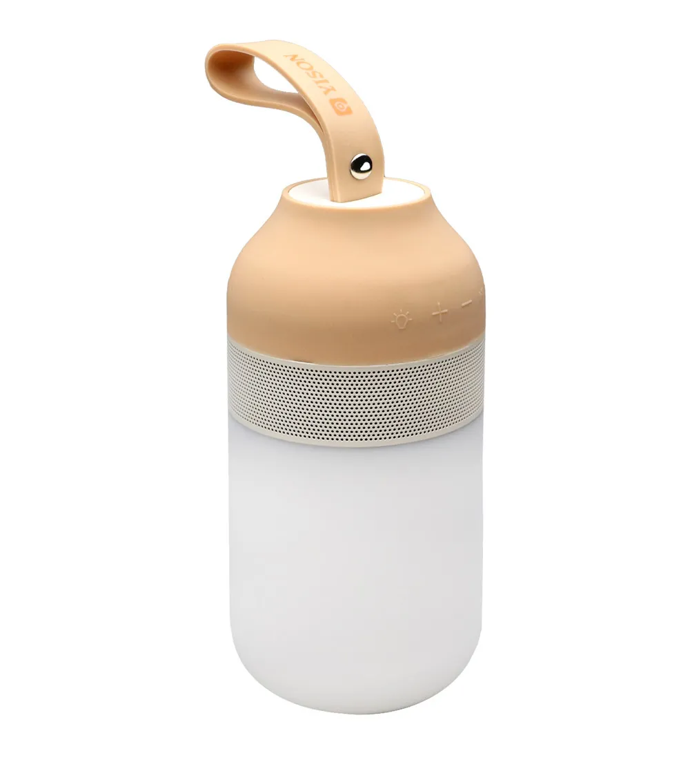 احتمالا هنگام بررسی اسپیکر بلوتوثی وایسون WS-3 در ابتدا تصور کنید با یک فلاسک یا قمقمه روبهرو هستید. این دستگاه شباهت زیادی به این وسایل دارد و هماهنگی کاملی را با اسباب پیکنیک و گردشهای شما به نمایش میگذارد. دکمههای کنترل پخش به شکل بسیار ظریفی در بخش بالایی بدنه جای داده شدهاند و دسترسی به آنها آسان است. در قسمت رویی دستگاه هم یک بند کوتاه و کاربردی دیده میشود که به کمک آن میتونید اسپیکر بلوتوثی وایسون را راحت جابهجا کنید یا در محلی مناسب قرار بدهید. اما احتمالا اصلیترین دلیلی که خرید اسپیکر بلوتوثی وایسون WS-3 را توجیه میکند، بهرهمندی آن از یک لامپ LED 360 درجه باشد که هم بسیار کاربردی است و هم به زیبایی این مدل افزوده است.