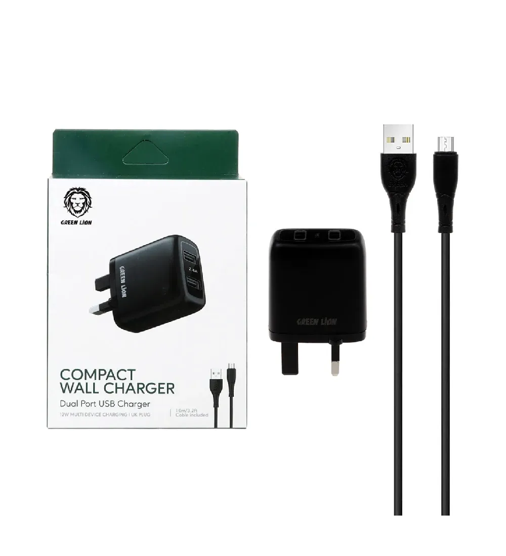 Green Lion GNC24AMCRBK 12W Two Port Fast Wall Charger with Android Charging Cable