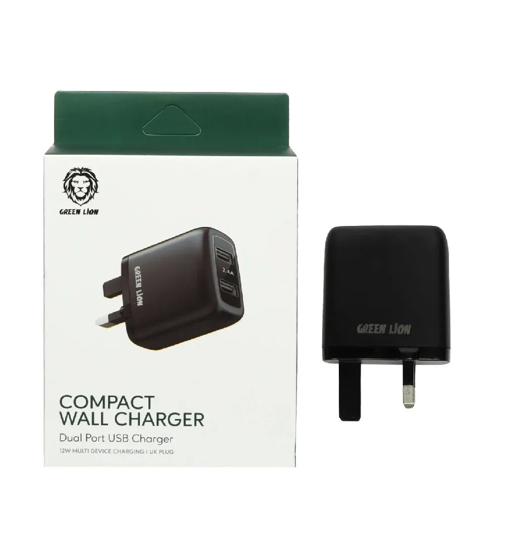 Green Lion GNC24AWCBK 12W Two Port Fast Wall Charger