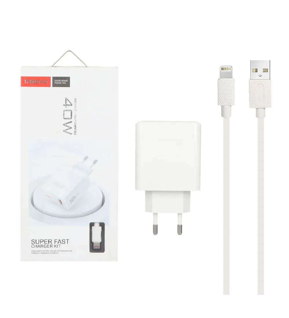 Tranyoo EU4-I 40W Fast One Port with iphone Cable Wall Charger