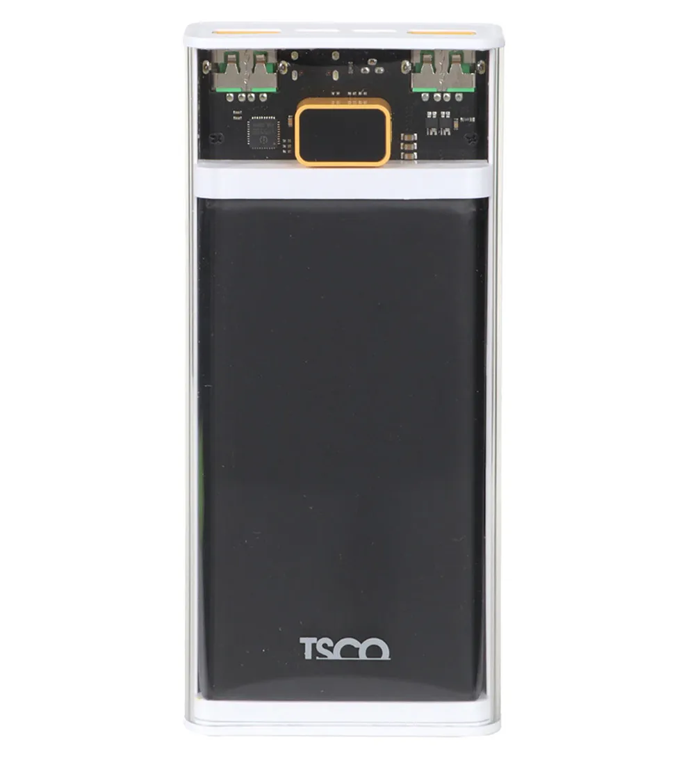 پاوربانک تسکو ظاهر جالبی دارد که آن را از مدلهای مشابه متمایز میکند. بخشی از قسمت بالایی این گجت بهصورت شفاف طراحی شده که این مسئله این امکان را به شما میدهد تا بخشی از اجزای داخلی آن را تماشا کنید. بدنهی اصلی از طریق یک خط نسبتا ضخیم از این کادر شفاف جدا میشود و ظاهری جذاب به آن میدهد. پاوربانک 20W تسکو مدل TP 884 ظرفیت 20000 میلی آمپر ساعت از نظر ابعاد، وضعیت خوبی دارد و بهراحتی در کیف دستی شما جا میشود. البته وزن دستگاه 430 گرم اعلام شده که کمی زیاد است و قرار دادن آن را در جیب لباس سخت میکند. با این حال این ظرفیت بالا و استفاده از ABS در ساخت بدنه، ارزشش را دارد.