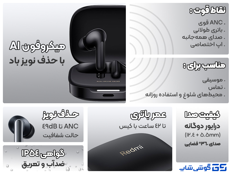 فروشگاه اینترنتی گوشی شاپ/هندزفری بلوتوثی /هندزفری بلوتوثی شیائومی/هندزفری بلوتوثی شیائومی مدل Redmi Buds 6