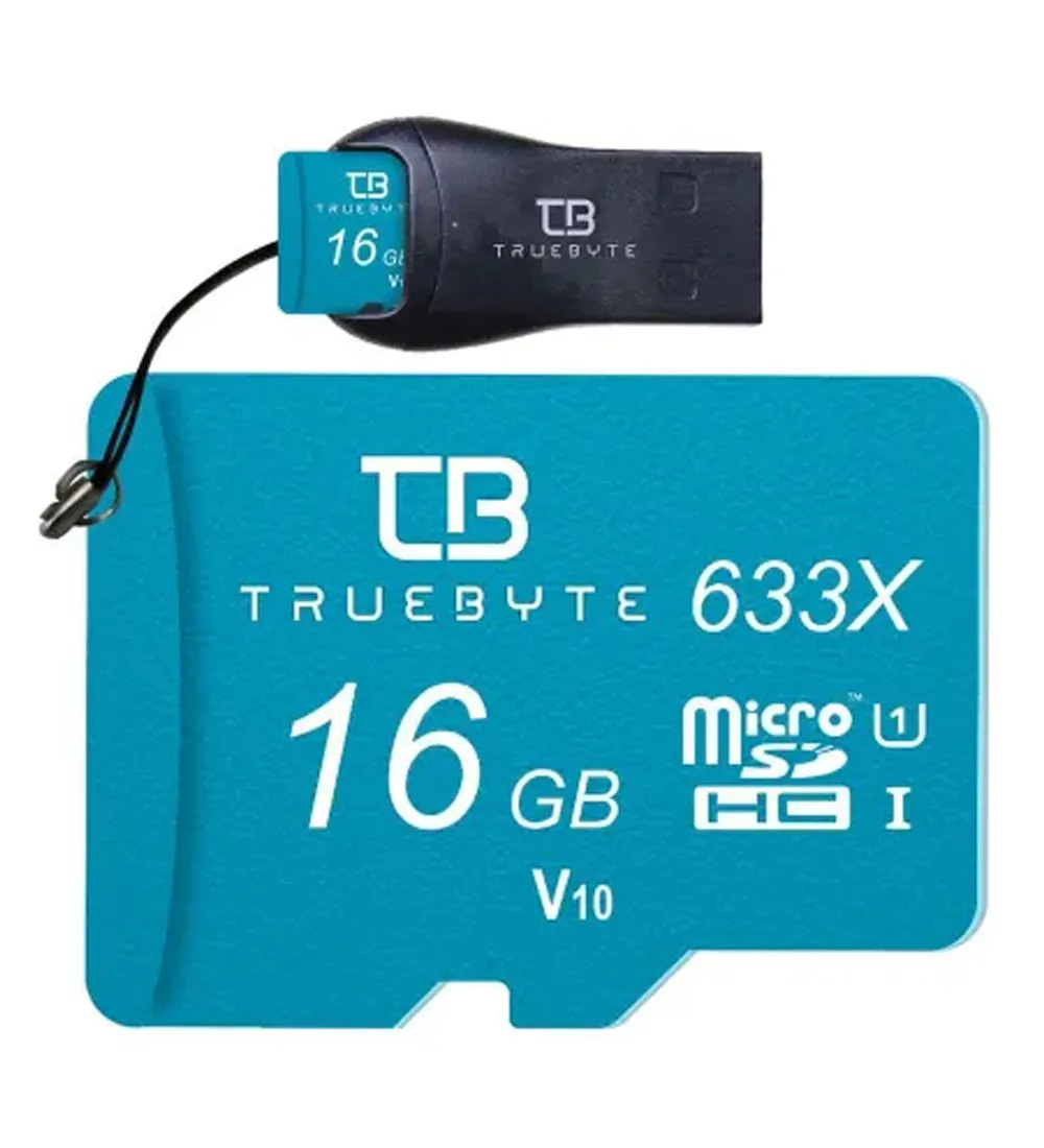 Truebyte 633X MicroSD HC V10 Class 10 UHS-I U1 W/A with Card Reader Memory Card - 16GB