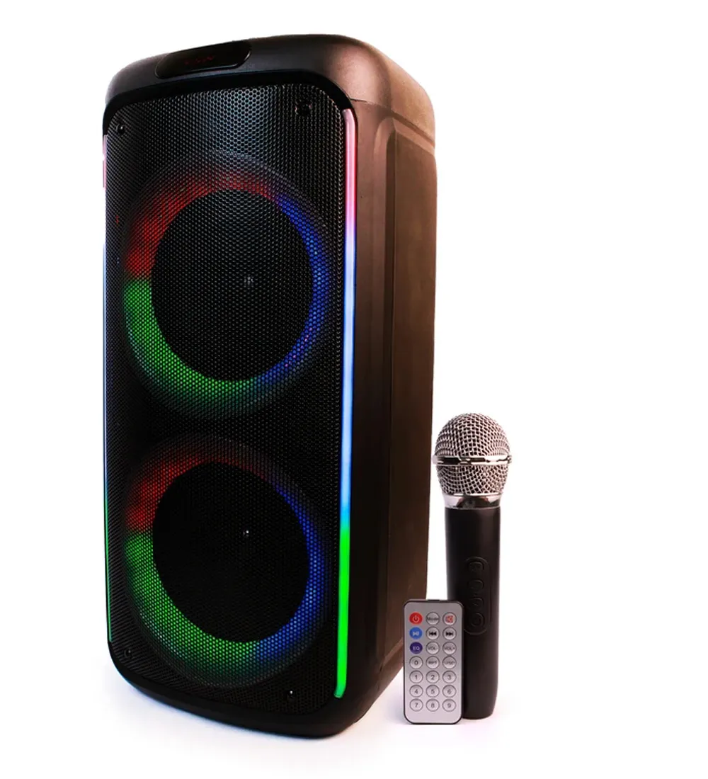 تعداد بلندگوها: یک تکه رقص نور: نور RGB ویژگیهای طراحی بلندگو: دارای دستگیرهی ثابت منبع انرژی: باتری قابل شارژ اقلام همراه بلندگو: ریموت کنترل ، میکروفون بی سیم ,دارای نشانگر LED