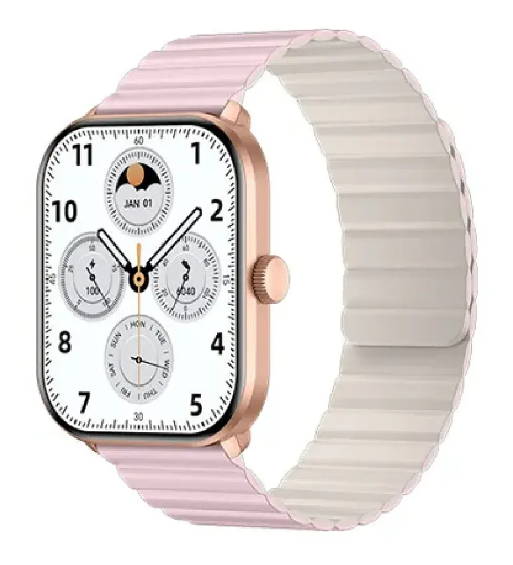 ساعت هوشمند گلوریمی GC Plus از طراحی مستطیلی با لبههای گرد بهره میبرد که ظاهری مدرن و الهامگرفته از ساعتهای پرچمدار مانند اپل واچ دارد. بدنه از آلیاژ آلومینیوم ساخته شده و با وزن 45 گرم، راحتی را برای استفاده طولانیمدت تضمین میکند. بندهای سیلیکونی قابل تعویض با عرض 22 میلیمتر، در رنگهای متنوع مانند مشکی، آبی و صورتی عرضه شده و با استایلهای رسمی یا ورزشی هماهنگ میشود.