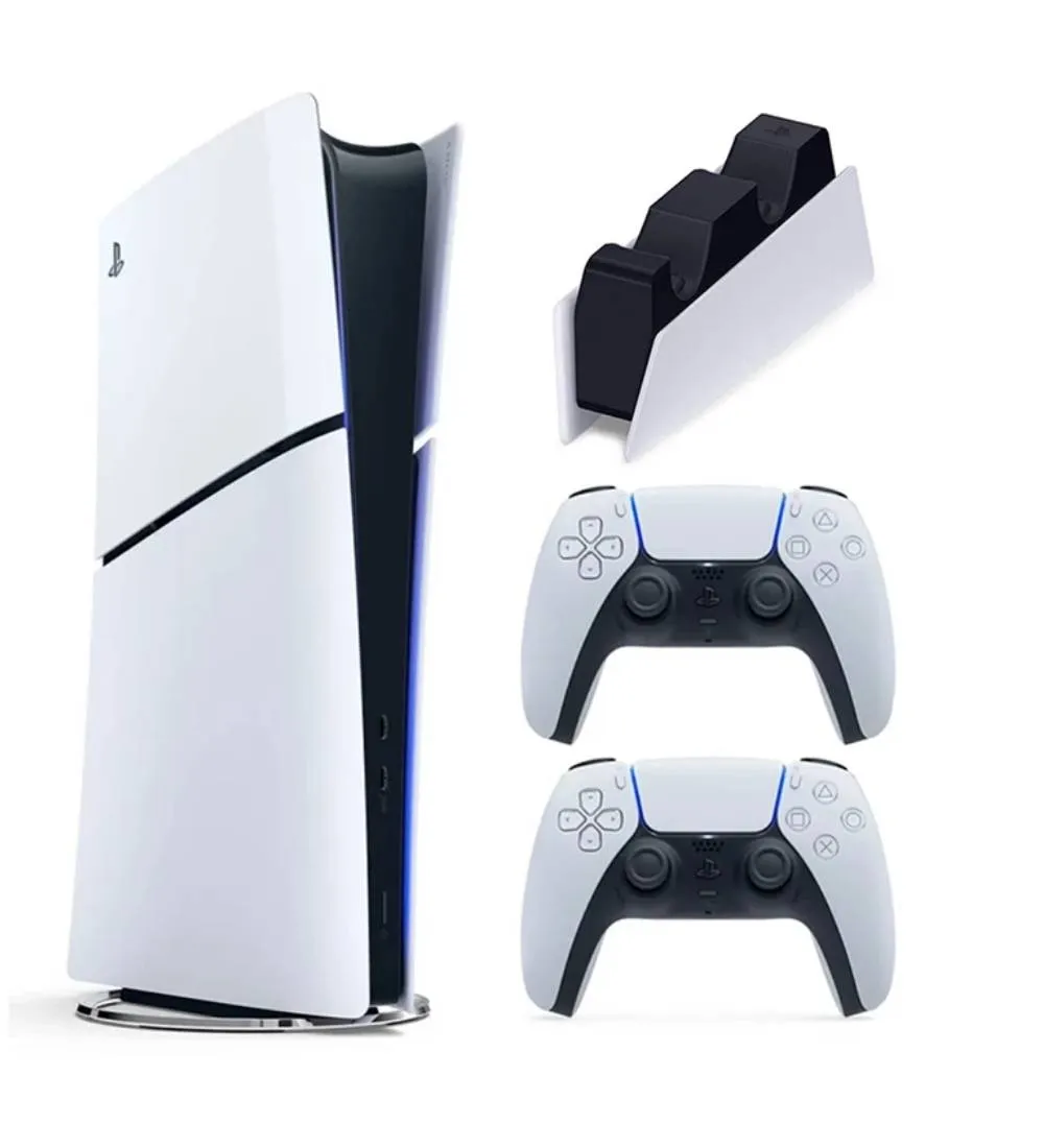 PlayStation 5 Slim Digital Edition America Region 2015 with one Extra DualSense Wireless Controller and DualSense Charging Station 1TB
