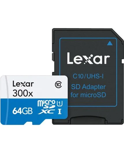 کارت حافظه لکسار میکرو اس دی اچ سی 64 گیگابایت کلاس 10 با سرعت 45 مگابایت در ثانیه به همراه آداپتور تبدیل